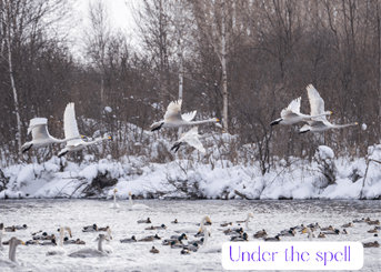 As she was tied to the stake, a flock of six swans glided down from the sky and circled the young woman’s head. The villagers saw this as a heavenly miracle but it was too late to stop the executioner lighting the sticks around her. Quickly she threw the shirts over the swans and they transformed into human men. “Sister!” they cried and hugged her tightly. The youngest brother always remained with one swan wing for an arm, as she had not had time to complete the final shirt.